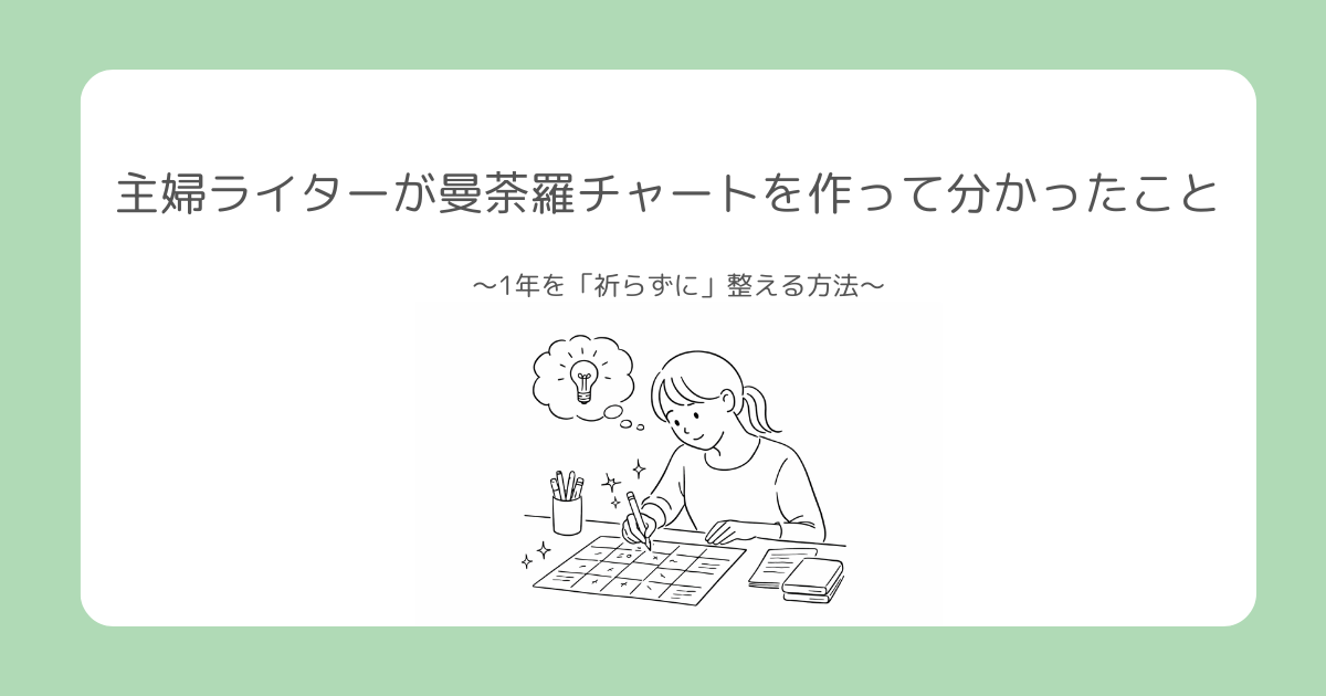そこで2025年の1月、何を書けばいいのかもよく分からないまま、気楽な気持ちで曼荼羅チャートを作成してみました。